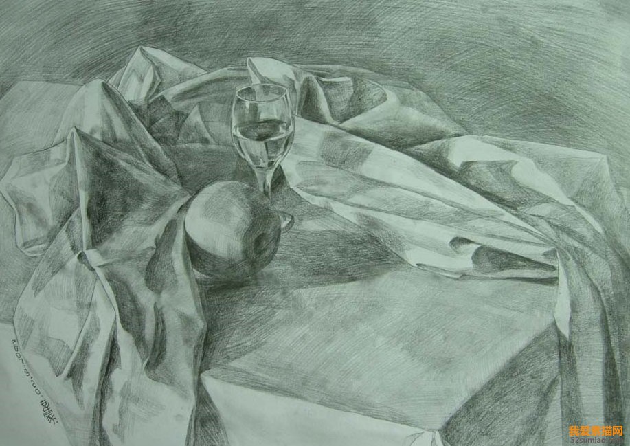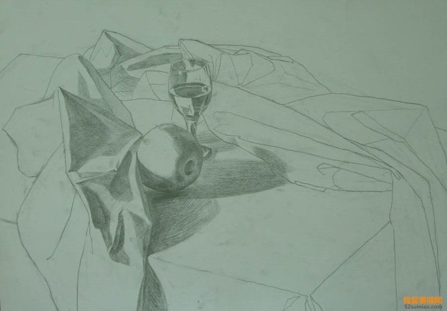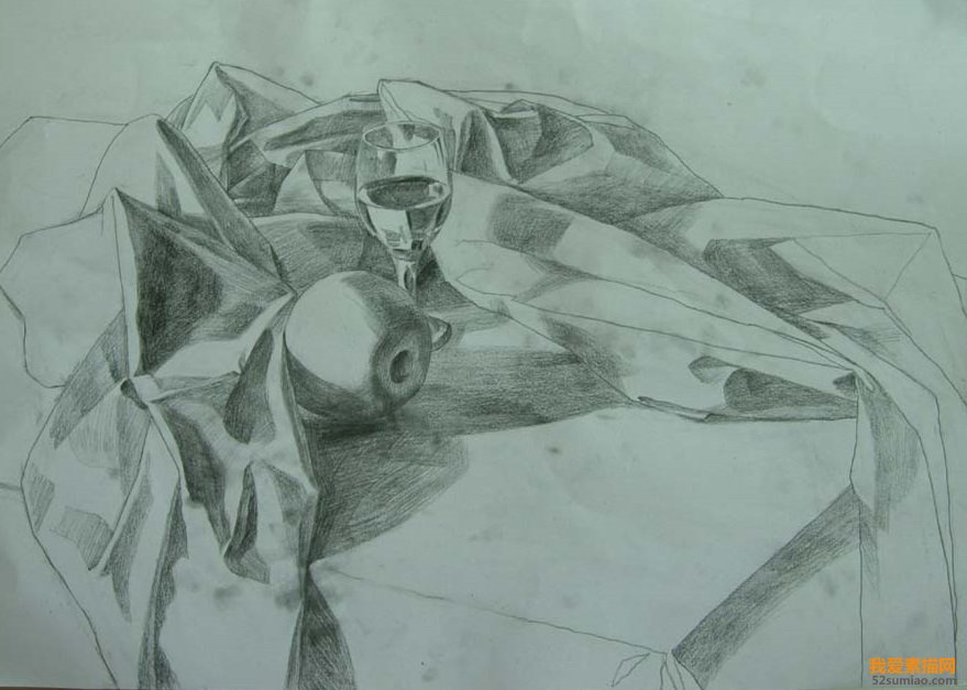 襯布算是靜物素描中比較難畫的物品之一了,初學者很容易把襯布畫碎、畫花、畫僵。怎樣才能掌握好襯布的畫法并表現出襯布的質感呢?需要注意那幾方面呢?