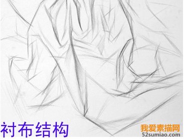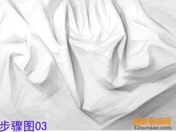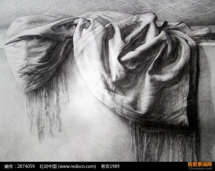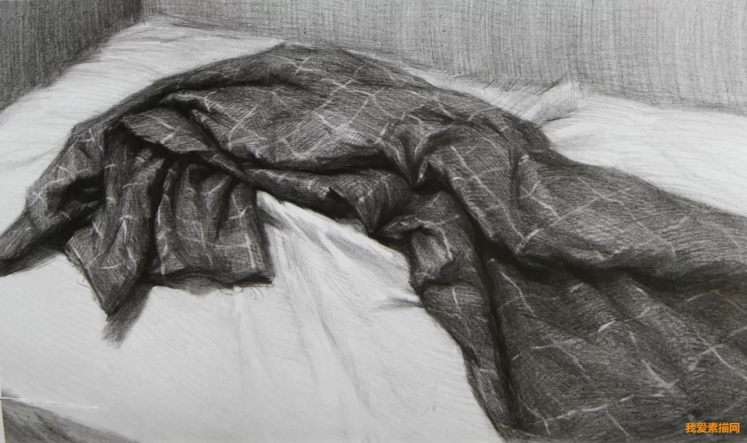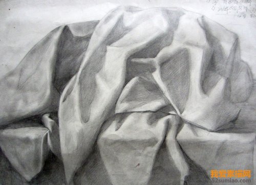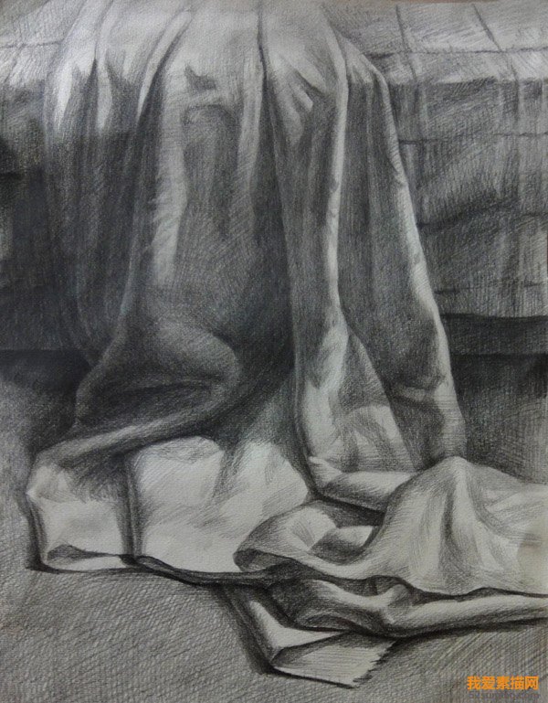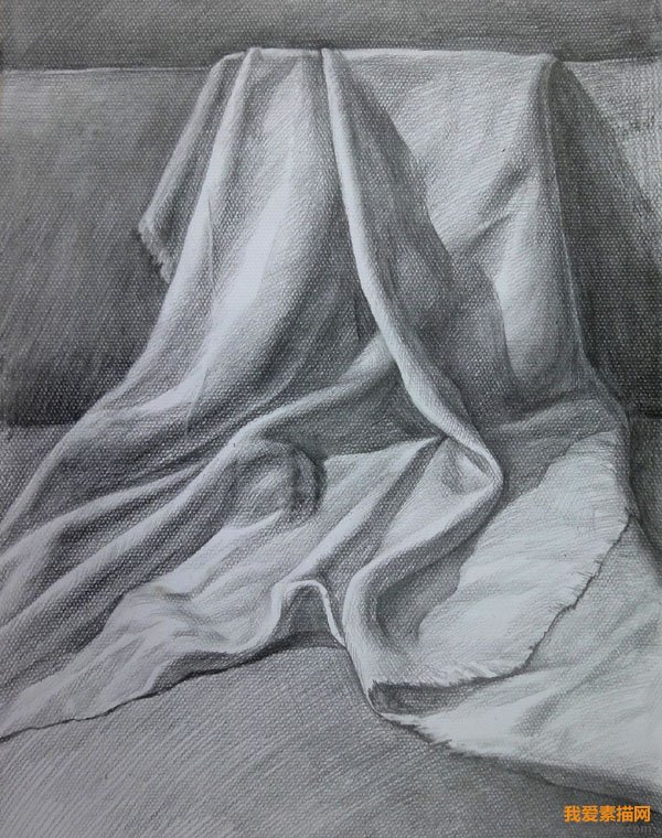 首先立體觀察,找出襯布的結構。有起伏就有明暗關系,將襯布理解為“圓柱體”或者是不規則的“多面體”的翻轉來進行分析,避免襯布在表現的時候平如紙張。