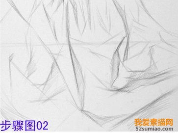 在表現的時候注意:化繁為簡,以一當十,表現幾根主要的褶皺或面,其它的進行次要處理。不然畫面亂作一團,無任何美感,從而使得畫面效果一落千丈。